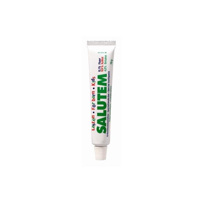 Lasten Salutem on 1½ -6 vuotiaille lapsille ja muille herkkäsuisille kehitetty hammastahna joka ei sisällä ärsyttäviä aineita.